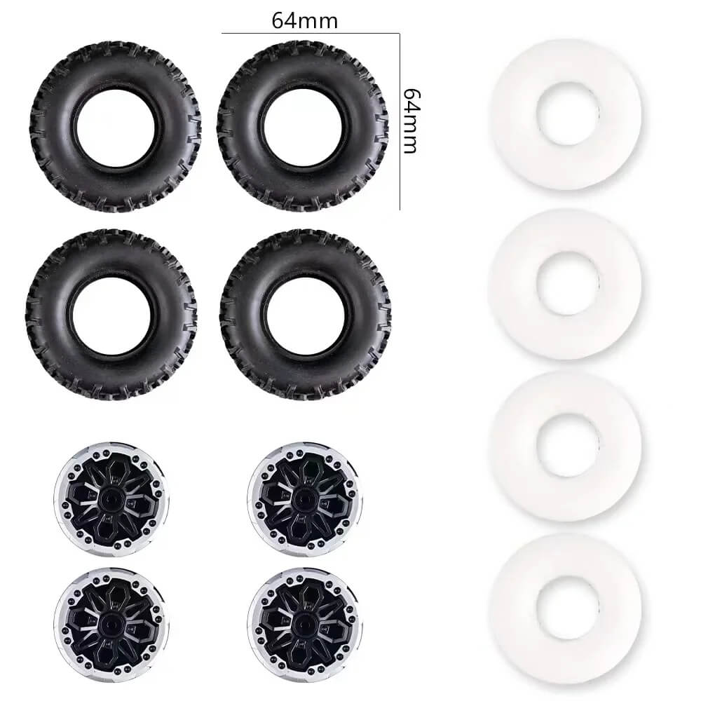 64mm Soft Tire Wheel Set for MN Models & WPL RC Rock Crawlers