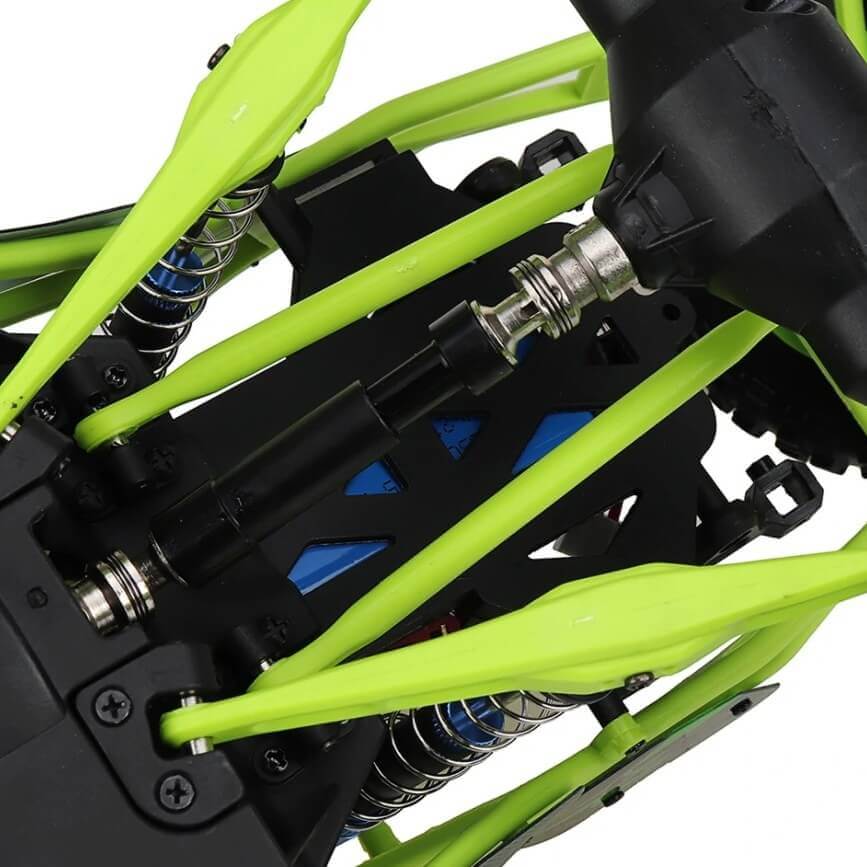 Built with a durable frame, shock absorbers, and large anti-slip rubber tires, this vehicle ensures excellent grip and stability on all terrains. The 2.4GHz control system provides reliable long-distance control of up to 100 meters, allowing precise handling wherever you race.